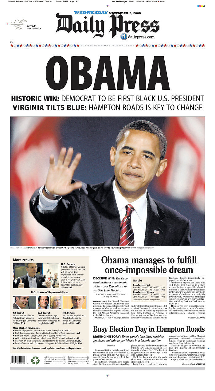 Daily Press, Newport News, Virginia, 5. November 2008